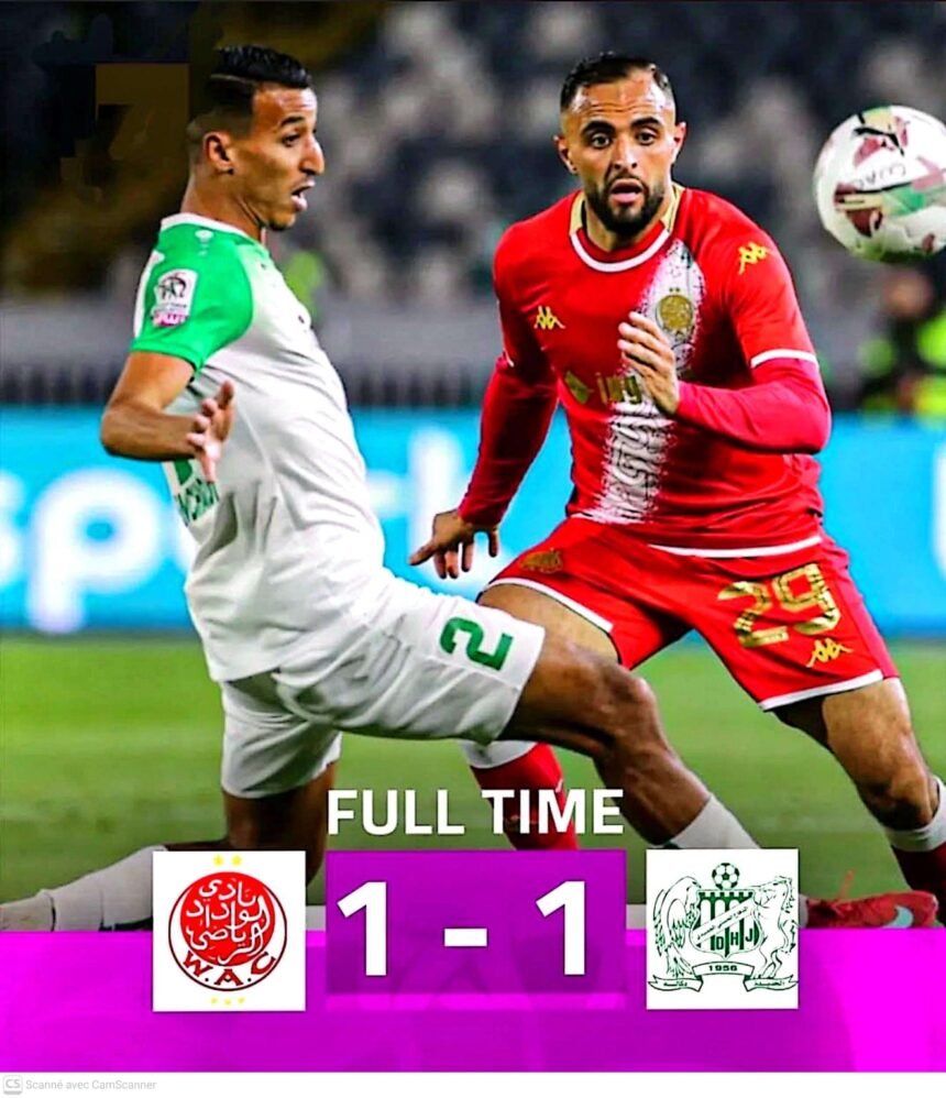 وبهذه النتيجة، يكتفي الفريقان بنقطة واحدة لكل منهما، في مباراة عكست مستوى تنافسياً محترماً بين الجانبين، لتظل حسابات الترتيب مفتوحة في الدوري الاحترافي المغربي، مع استمرار الصراع خلال الجولات المقبلة.