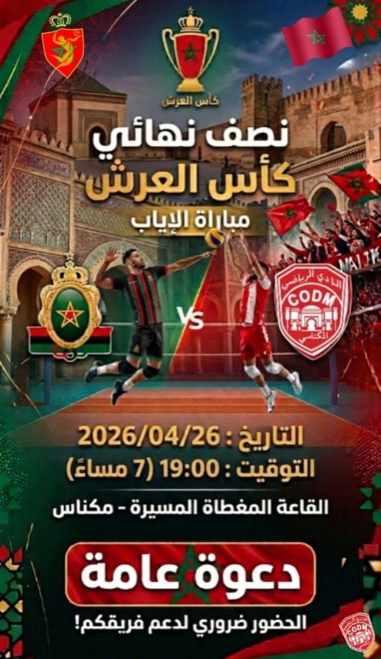 يستعد النادي المكناسي لكرة الطائرة لخوض مواجهة حاسمة على أرضه، حين يستقبل نظيره الجيش الملكي، في إياب نصف نهائي كأس العرش، واضعًا نصب عينيه تحقيق التأهل إلى المباراة النهائية.