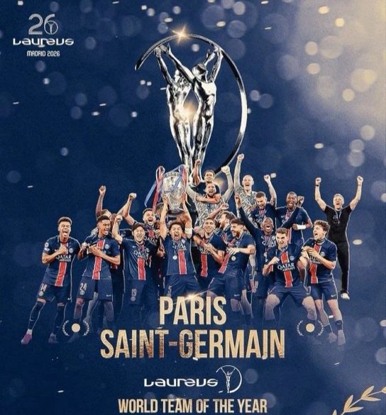 تُوِّج نادي باريس سان جيرمان بجائزة لوريوس لأفضل فريق في العالم لعام 2026، خلال الحفل الذي أُقيم مساء الإثنين 20 ابريل 2026في العاصمة الإسبانية مدريد.