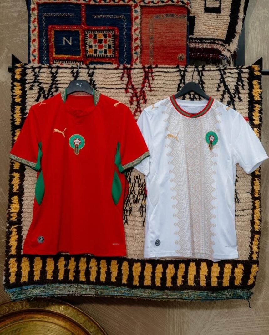 وجاء القميص الأساسي باللون الأحمر التقليدي، مع لمسات خضراء مستوحاة من العلم الوطني، بينما تميز القميص الثاني باللون الأبيض، مزينًا بنقوش مستلهمة من الزخرفة المغربية الأصيلة، ما يعكس العمق الحضاري للمملكة.