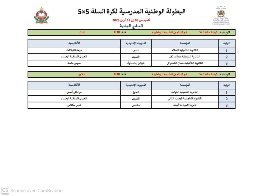 أما بخصوص الفئة المشاركة ضمن مسالك رياضة ودراسة فكانت النتائج على الشكل التالي في مباريات عرفت تنافسا حادا بين الفرق المشاركة من مختلف المؤسسات التعليمية التابعة للمديريات الاقليمية بمختلف الأكاديميات الجهوية :