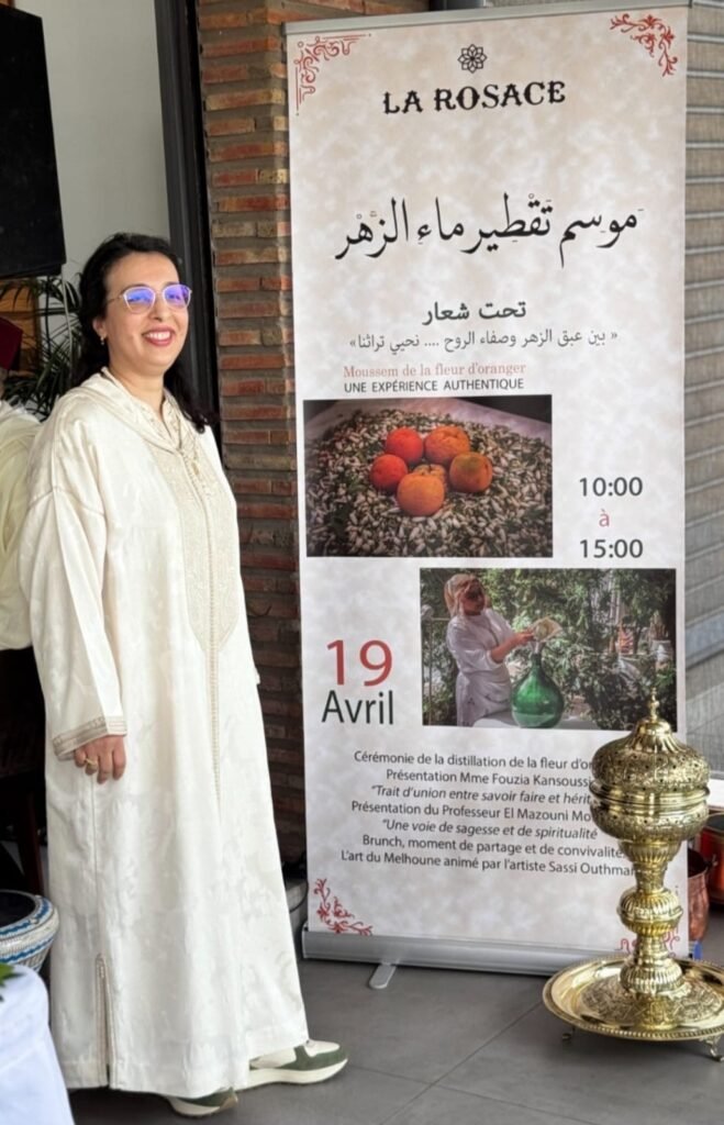 هذا اللقاء، الذي أشرفت عليه المهندسة المعمارية صفاء نديم، شكّل لحظة ثقافية متميزة جمعت بين البعد التراثي والمعرفي، حيث تم تقديم عرض حي لعملية تقطير ماء الزهر والورد وفق الطرق التقليدية، في مشهد أعاد إلى الأذهان طقوسا متوارثة تعكس ارتباط المرأة المغربية بفضائها الأسري وتراثها الأصيل.