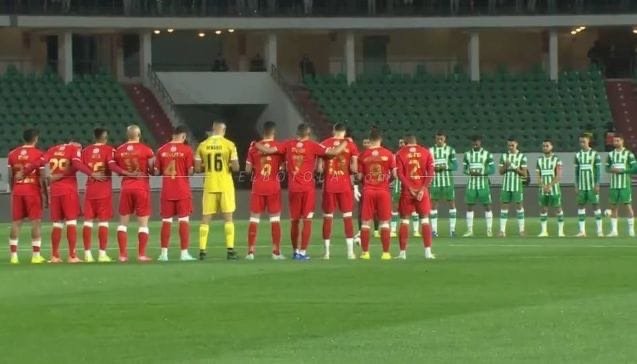 وشارك اللاعبون وأفراد الطاقمين التقنيين، إلى جانب الجماهير الحاضرة، في هذه الوقفة الإنسانية، تعبيرًا عن الحزن والتضامن مع أسر الضحايا، في مشهد عكس تلاحم مكونات كرة القدم الوطنية في مثل هذه الظروف الأليمة.