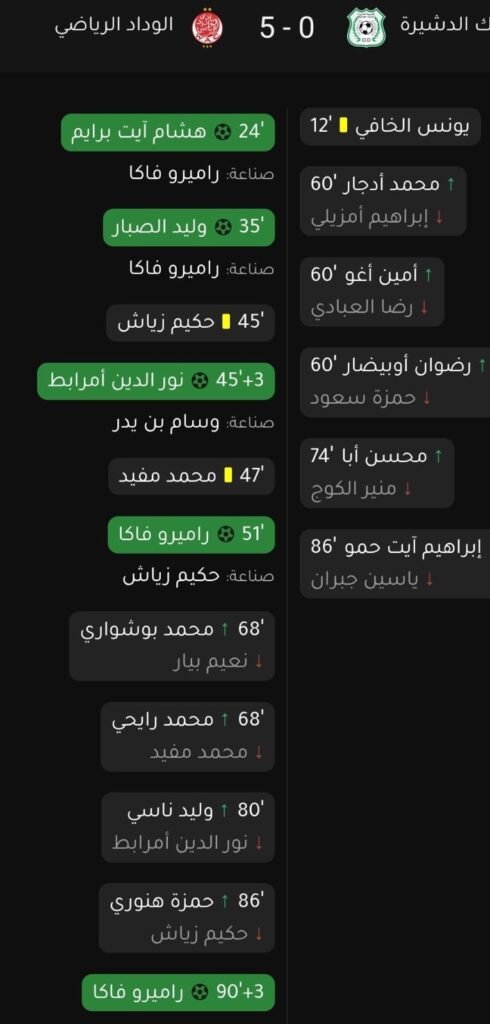 بهذا الفوز، رفع الوداد رصيده إلى 23 نقطة معززًا موقعه في صدارة الدوري، مؤكداً تفوقه الهجومي واستمراره في صراع المنافسة على اللقب، فيما تجمد رصيد أولمبيك الدشيرة عند 15 نقطة في المركز السابع.