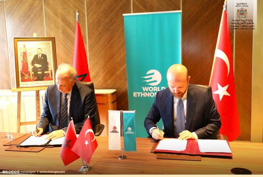 وقع السيد محمد سعد برادة ، وزير التربية الوطنية والتعليم الأولي والرياضة ، والسيد نجم الدين بلال اردوغان ، رئيس الاتحاد العالمي للرياضات التقليدية ، بحضور السيد مصطفى إيلكر كيليتش ، سفير جمهورية تركيا لدى المملكة المغربية ، يوم الثلاثاء 30 شتنبر 2025 بالدار البيضاء ، مذكرة تفاهم تروم تعزيز التعاون من أجل نشر وتطوير الرياضات والألعاب التقليدية ، عبر شراكة مستدامة تعكس القيم الثقافية الفريدة لمختلف البلدان والمناطق ، كما تمهد لتوسيع نطاق التعاون وتنفيذ مشاريع مستقبلية مشتركة.